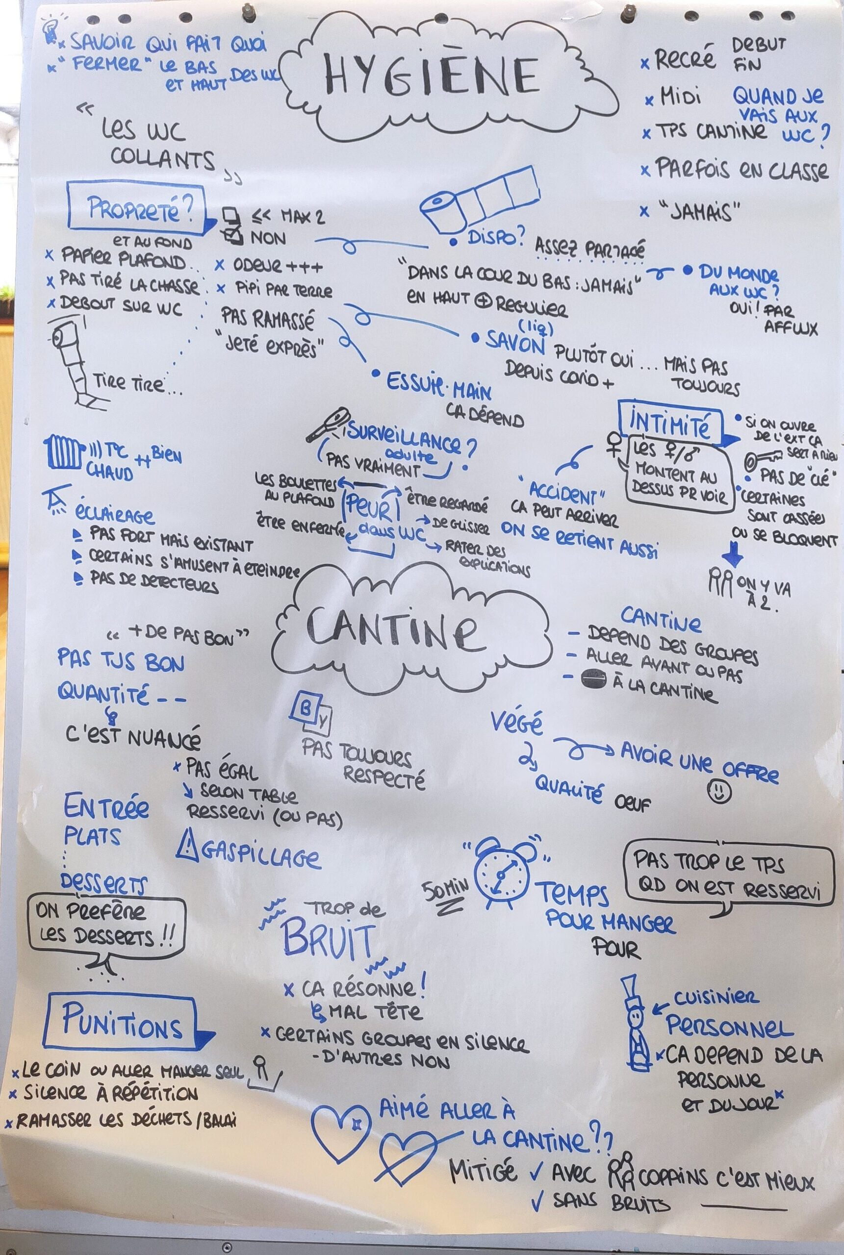 Merci aux parents qui ont transmis 2 questionnaires aux enfants sur les toilettes et leur usage, ainsi que sur la cantine et son fonctionnement. Les questionnaires ont ensuite été travaillés dans les classes et une synthèse des réponses a été présentées via les délégués.