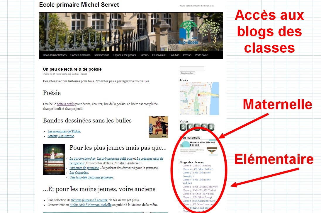 Nous vous informerons via le blog de l’école des modalités d’organisation de la continuité pédagogique. Dans la colonne de gauche, vous trouverez les liens vers l’ensemble des sites des classes d’élémentaire ainsi que le vers le site de la maternelle. Un petit nouveau dans les blogs de classe, celui de l’UPE2A de Jean-Luc pour les élèves allophone, qui ne parlent pas ou peu Français.