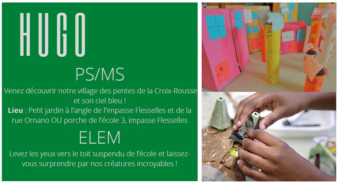 - Lieu : Petit jardin à l’angle de l’impasse Flesselles et de larue Ornano OU porche de l’école 3, impasse Flesselles