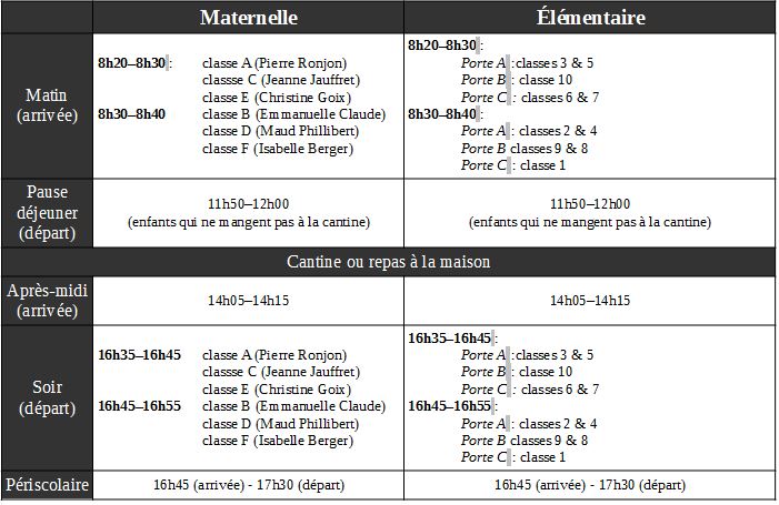- Plus de distanciation en maternelle et en élémentaire en extérieur et dans les cours de récréation,